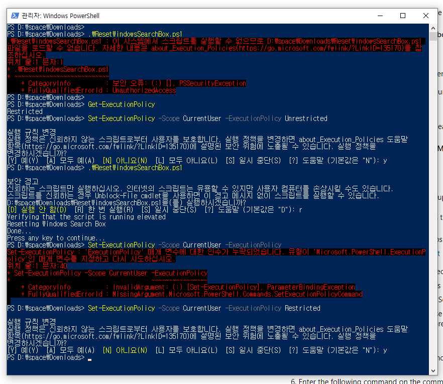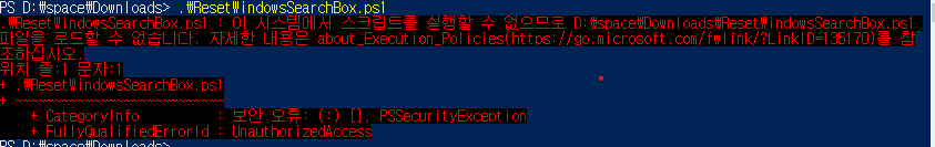 2. cd {다운로드 받은 경로} -> .\ResetWindowsSearchBox.ps1