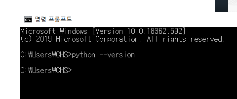 3. python --version 실행!! (열려있던 커맨드는 끄고 다시 킨다)